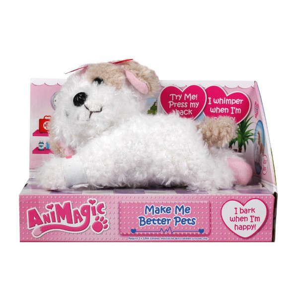 Piesek wydaje dźwięki i zachowuje się jak prawdziwy szczeniak. Ma na rączce opatrunek. Wydaje również realistyczne odgłosy, a gdy jest zmęczony, zasypiaja cichutko pochrapując.