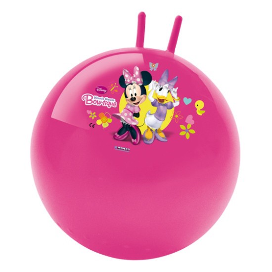 Kolorowa piłka skacząca z motywem Myszki Minnie. Średnica: 45 cm. Piłka przeznaczona jest dla dzieci do 50 kg. Wykonana z grubego tworzywa sztucznego, posiada wygodne uchwyty, certyfikat CE. Dostarcza dzieciom wiele radości, ćwiczy zmysł równowagi, wspomaga rozwój mięśni i koordynację ruchową.