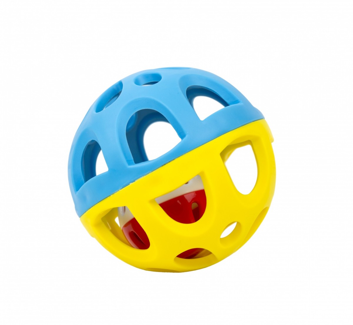 Piłka Grzechotka wykonana została z miękkiego, elastycznego tworzywa. W środku piłeczki umieszczona jest druga piłeczka z grzechotką. Piłka jest łatwa do chwytania i trzymania, dzięki ażurowej konstrukcji. Przy potrząsaniu lub toczeniu wydaje wesołe, grzechoczące dźwięki.