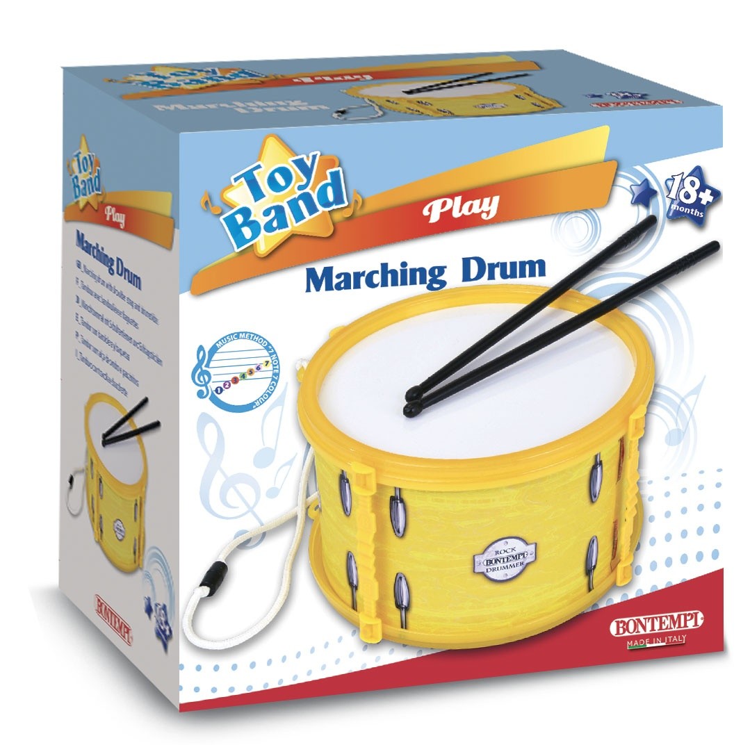Bębenek marszowy włoskiej firmy Bontempi to idealny instrument dla małego dobosza. Bębenek ma średnicę 210 mm, 2 plastikowe pałeczki oraz pasek na ramię wykonany z tworzywa sztucznego.