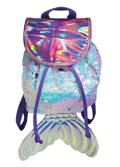 Plecak ma atrakcyjny design w stylu syrenki, z dwustronnymi, mieniącymi się cekinami jasno niebiesko-różowymi, od spodu fioletowymi. Idealnie nada się do przedszkola, na basen czy szkolną wycieczkę. Plecak posiada jedną komorę, ściąganą sznurkiem i zamykaną klapą na rzep. Posiada regulowane szelki, oraz uchwyt do zawieszenia.