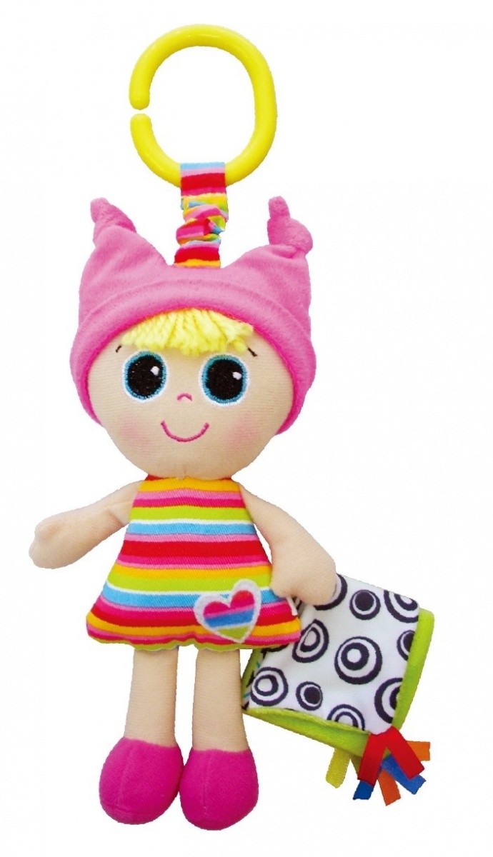 Sympatyczna, pluszowa lala z grzechotką to świetna zawieszka do wózka, maty lub łóżeczka, a także mięciutka maskotka do przytulania. Lala wykonana jest z przyjemnego w dotyku materiału.