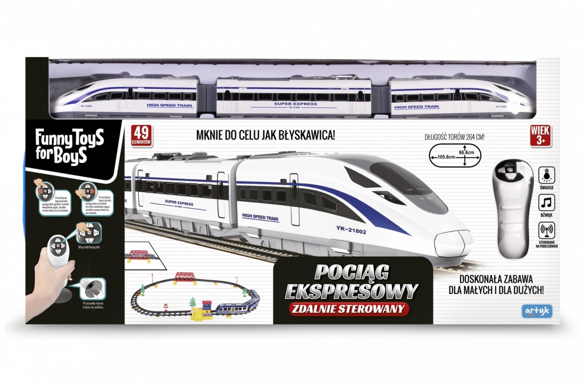 Strona główna Nowości i zapowiedzi Pociag ekspresowy na pilota 49 elementów TFB Cena Netto: 58,99 zł. error_outline Produkt chwilowo niedostępny. Opis Pociag ekspresowy na pilota 49 elementów TFB Funkcje: Dźwięk Światło