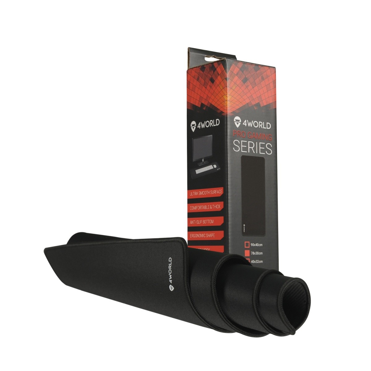 Podkładka pod mysz i klawiaturę 4world zaprojektowana została z myślą o użytkownikach, którzy wymagają maksimum komfortu. Wykonana z materiałów najwyższej jakości ma za zadanie w pełni wykorzystać ponadprzeciętne możliwości wszystkich parametrów myszy. Powłoka podkładki wykonana z materiału o niskim poziomie tarcia pozwala na szybszy ślizg, przez co zwiększa precyzję oraz szybkość reakcji. Zastosowanie warstwy antypoślizgowej zapobiega przemieszczaniu się podkładki a obszycie krawędzi powoduje mniejsze zużycie i tym samym wydłuża okres jej użytkowania. Przyjemna w dotyku, doskonale sprawdza się podczas wielogodzinnych rozgrywek. Dodatkowym atutem podkładki jest jej design. Stanowi niezbędny element biurka każdego gamera. Dzięki atrakcyjnej cenie oraz wysokiej jakości jest polecana zarówno dla początkujących jak i zaawansowanych graczy.
