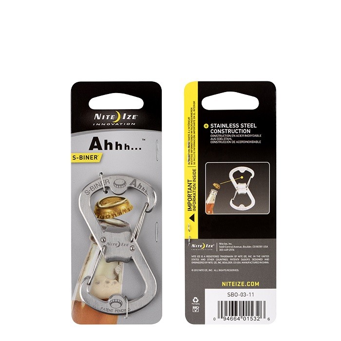 S-Biner Ahhh to multifunkcjonalny karabinek wykonany ze stali nierdzewnej, wzbogacony o funkcję otwieracza do butelek. Podobnie jak klasyczny S-Biner, jest wposażony w solidne zatrzaski, które możesz wykorzystać na wiele sposobów- do noszenia kluczy oraz mocowania, łączenia i zabezpieczania przedmiotów.