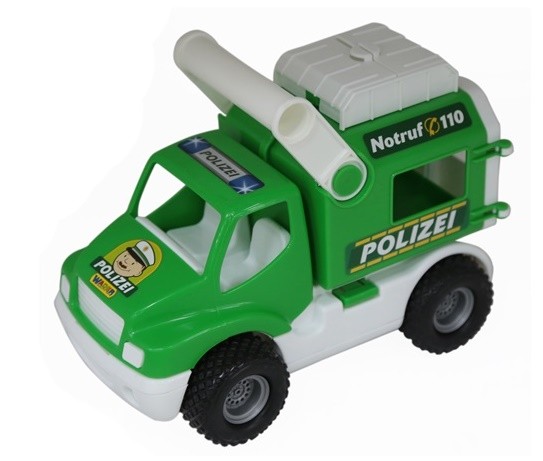 - Samochód POLICJA wyposażony jest w cztery szerokie, gumowe koła.