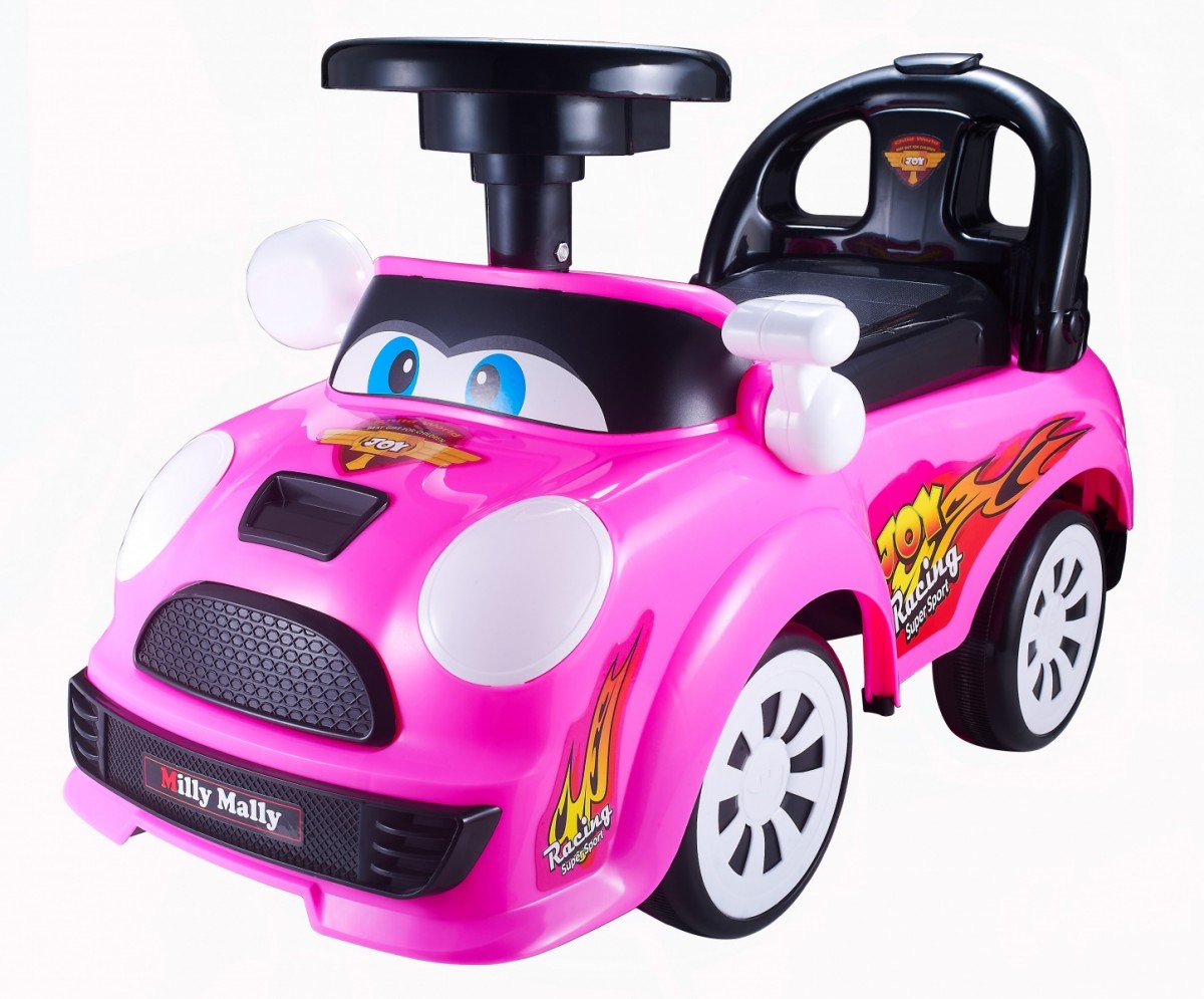 Koła z plastikowe z gumą ochronną. Pojazd posiada wyjmowane oparcie, otwieraną klapę siedziska i boczne lusterka.
