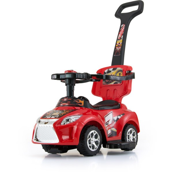 Jeździk KID to wielofunkcyjna zabawka wyposażona w dźwięki na kierownicy, schowek pod siedzeniem i bezpieczne oparcie. Podnóżek, barierkę, oraz prowadnik, wraz ze wzrostem dziecka wypina się, dzięki temu jeździdło "rośnie" wraz z dzieckiem. Jeździdełko wykonane zostało z dbałością o bezpieczeństwo twojego dziecka, posiada zabezpieczenie przeciw wywrotce z przodu oraz z tyłu. Pojazd w pięciu ciekawych wzorach, stylizowanych na pojazdy wyścigowe oraz w żywej kolorystyce zachęca malucha do zabawy i odkrywania nowych funkcji.