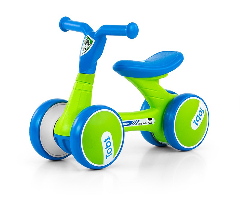 Jeździk TOBI jest idealnym rozwiązaniem dla maluszków, które dopiero rozpoczynają naukę jazdy na rowerku i jeszcze nie potrafią utrzymać równowagi na dwóch kółkach, ale chcą już samodzielnie się przemieszczać. Cztery kółka zapewniają niezwykłą stabilność, bezpieczeństwo i komfort jazdy zarówno w domu jak i na zewnątrz, np. po chodniku, a lekka i jednocześnie wytrzymała konstrukcja z wysokiej jakości solidnego plastiku sprawdzi się w każdych warunkach. Natomiast 7 piankowe koła zapewniają lekkość toczenia nie męcząc naszego kierowcy. Rękojeści z osłonkami zapewnią ochronę dłoni dziecka, a odpowiednio wyprofilowane siedzisko zwiększy komfort i bezpieczeństwo jazdy.