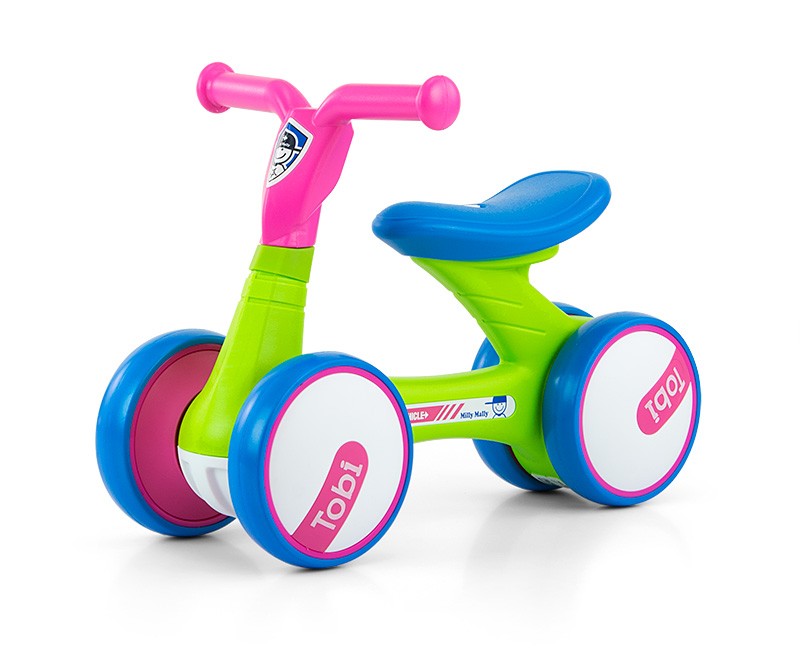 Jeździk TOBI jest idealnym rozwiązaniem dla maluszków, które dopiero rozpoczynają naukę jazdy na rowerku i jeszcze nie potrafią utrzymać równowagi na dwóch kółkach, ale chcą już samodzielnie się przemieszczać. Cztery kółka zapewniają niezwykłą stabilność, bezpieczeństwo i komfort jazdy zarówno w domu jak i na zewnątrz, np. po chodniku, a lekka i jednocześnie wytrzymała konstrukcja z wysokiej jakości solidnego plastiku sprawdzi się w każdych warunkach. Natomiast 7 piankowe koła zapewniają lekkość toczenia nie męcząc naszego kierowcy. Rękojeści z osłonkami zapewnią ochronę dłoni dziecka, a odpowiednio wyprofilowane siedzisko zwiększy komfort i bezpieczeństwo jazdy.