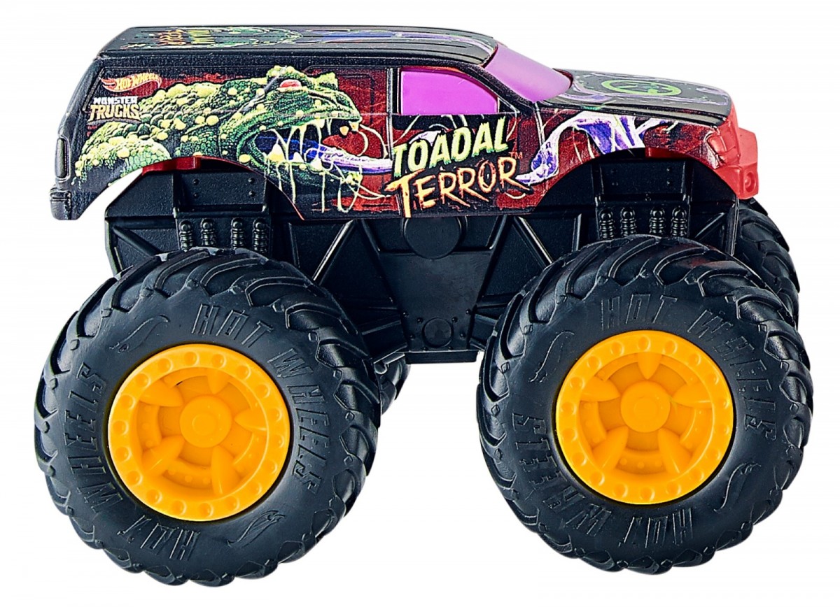 Dwa pojazdy-rywale Hot Wheels Monster Trucks Rev Tredz w skali 1:43 w jednym opakowaniu - gotowe na wielkie kraksy! DUŻE koła tych niezwykłych maszyn mogą z łatwością pokonywać przeszkody i stawać do pojedynku z przeciwnikami! Nakręć pojazdy i poślij je naprzód, by rozbijały się w stylu Monster Trucks! Każde opakowanie zawiera dwa pojazdy idealne do epickich kraks, a także informacje dotyczące danego Monster Trucka, obejmujące między innymi jego nazwę, typ i unikalny atak - aby odgrywanie przygód było jeszcze ciekawsze. Sprzedawane oddzielnie w zależności od dostępności. Kolory i elementy dekoracyjne mogą się różnić.