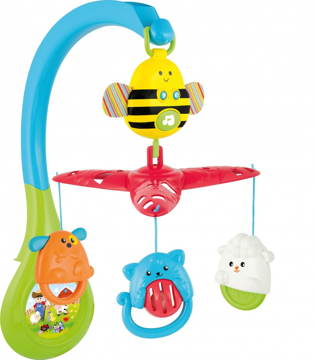 Zabawka 3 W 1 to : Karuzelka, Grająca Pszczółka i 3 grzechotki. Obraca się, gra 12 melodii. Odtwarza muzykę aż 8 minut. Grającą pszczółkę oraz grzechotki można łatwo odłączyć i bawić się nimi w wózku lub łóżeczku.