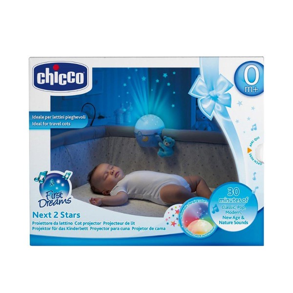 Wielofunkcyjna zabawka dla noworodka i niemowlęcia pracująca w 3 trybach: delikatna poświata, lampka nocna i nocny projektor gwiazdek + pozytywka. Dzięki wbudowanemu sensorowi, zabawka automatyczne włącza się na dźwięk płaczu dziecka. To aż 30 minut efektów świetlnych i dźwiękowych! Maskotka - przytulanka dołączona do projektora jest odczepiana! Projektor można zamontować na łóżeczku Next2Me lub dowolnym kojcu.