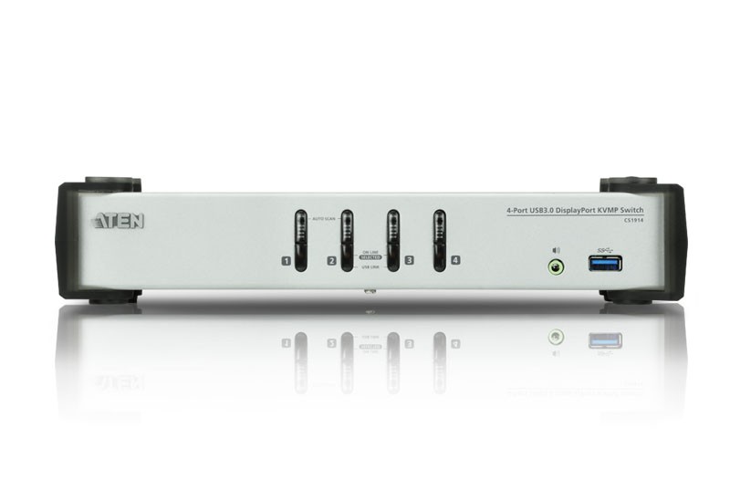 4-portowy przełącznik DisplayPort KVMP ATEN CS1914 USB 3.0 zapewnia najnowsze innowacje w technologii przełączania KVM na komputery stacjonarne, aby zaspokoić rosnące zapotrzebowanie na wyższą jakość wideo i szybkość przesyłania plików na nowoczesnych komputerach. CS1914 zapewnia najwyższą rozdzielczość do 3840 x 2160 @ 30 Hz, koncentrator SuperSpeed USB 3.1 Gen 1 z szybkością transferu 5 Gb / s i ulepszoną obsługą przyjazną dla użytkownika.