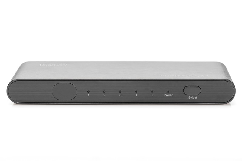 Przełącznik Digitus 4K HDMI 5x1 umożliwia wygodną zmianę pomiędzy 5 wejściami HDMI (odtwarzacz DVD/Blu-Ray, konsola do gier, urządzenia do strumieniowego przesyłania danych, odbiornik cyfrowy, itp.) za pomocą zdalnego sterowania, zintegrowanego automatycznego rozpoznawania lub alternatywnie samodzielnie za pomocą przełącznika. Możesz zapomnieć o uciążliwym przełączaniu kabli. Obsługa formatu Ultra HD 4K2K (60 Hz) pozwala cieszyć się multimediami w wyjątkowo wysokiej rozdzielczości.