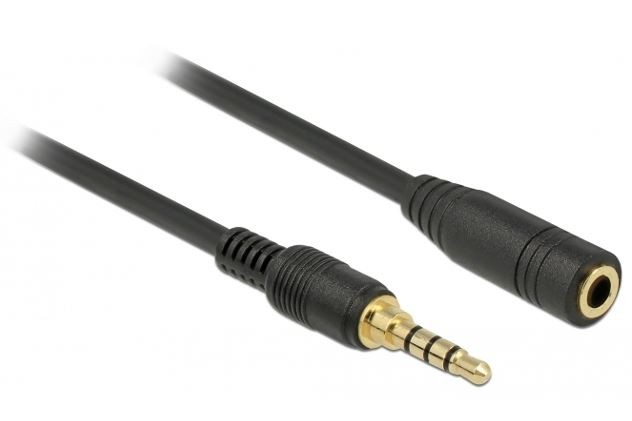 Kabel Delock jack 3,5 mm umożliwia wydłużenie połączenia. Można używać do podłączenia słuchawek albo urządzeń mobilnych. Dzięki dodatkowemu złotemu pierścieniowi na złączy, kabel audio może być łatwo włączony do urządzeń, które są osłonięte.