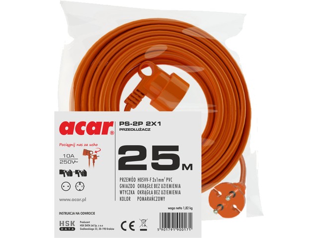 Strona główna Akcesoria RTV listwy zasilające Przedłużacz PS-2P 2x1 25m bez styku ochronnego pomarańczowy H05VVVDE Cena Netto: 35,40 zł. error_outline Produkt chwilowo niedostępny. Opis Przedłużacz ogrodowy ACAR PS-2P w kolorze pomarańczowym, bez uziemienia.