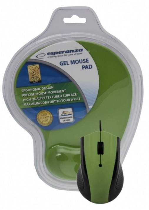 Nowoczesna, przewodowa mysz optyczna z podkładką żelową. Posiada 3 przyciski. Dzięki ergonomicznemu kształtowi idealnie leży w dłoni i nie powoduje zmęczenia w czasie pracy. Współpracuje zarówno z notebookami jak i komputerami stacjonarnymi. Podkładka przeznaczona do pracy zarówno z myszkami optycznymi jak i laserowymi. Zapewnia wysoką precyzję ruchu myszki. Dopasowuje się do kształtu dłoni, pomaga utrzymać nadgarstki w prawidłowej pozycji oraz zapobiega ich zmęczeniu w trakcie pracy.
