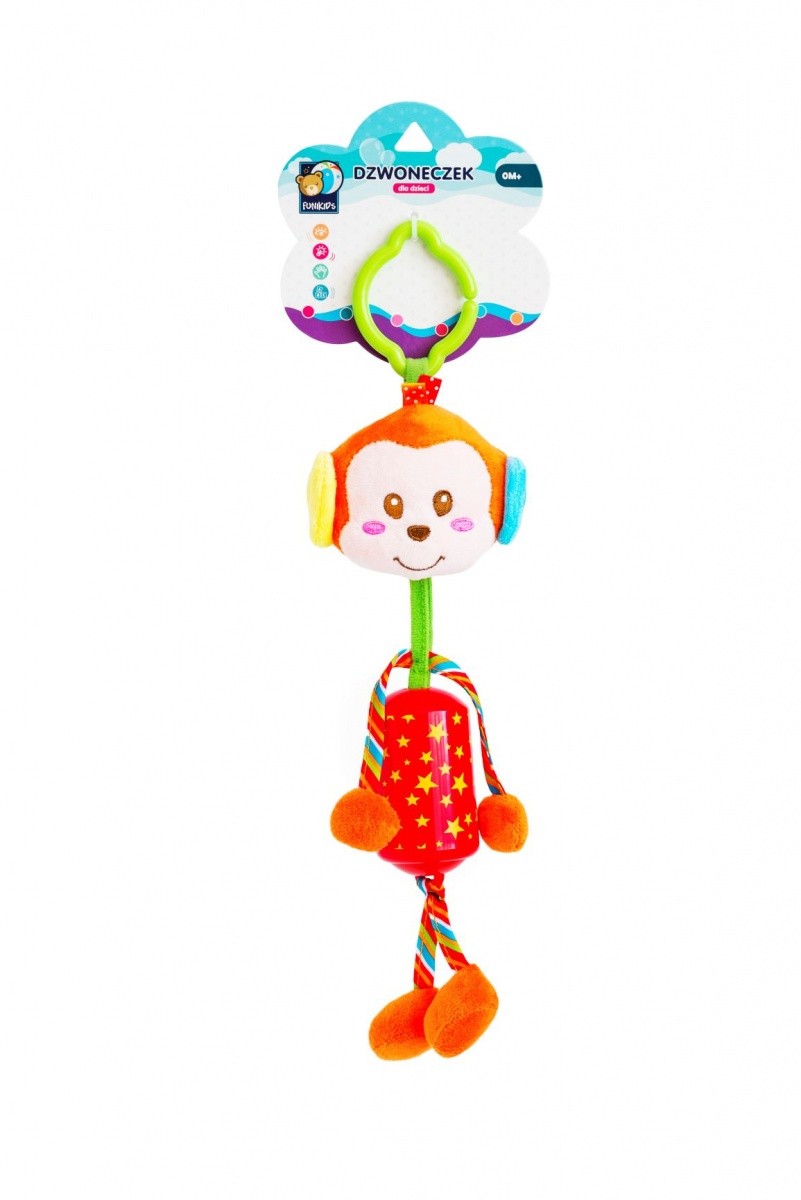 Zawieszki Funikids są przeznaczone dla maluchów już od pierwszych dni życia. Wygodny zaczep mocujący sprawia, że rodzic może odpinać i przepinać zawieszkę z wózka do łóżeczka i na odwrót. Walor dźwiękowy to dzwoneczek w kształcie walca, obszyty kolorowym materiałem. Zabawka dzwoni wesoło przy każdym potrząsaniu, zwracając uwagę maluszka. Zawieszka z Małpką jest także zabawką sensoryczną, która pomaga dziecku poznać pierwsze kolory i różne faktury materiałów.