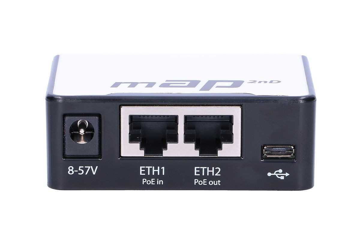 RouterBOARD RBmAP2n marki Mikrotik to kompaktowy punkt dostępowy, idealny dla rozwiązań do domu bądź biura. Pracuje w paśmie częstotliwości 2.4 GHz. Jest łatwy w konfiguracji dzięki systemowi operacyjnemu RouterOS L4. Zaletą urządzenia są niewielkie wymiary oraz możliwość zasilania urządzenia poprzez port USB, przez wtyk DC lub poprzez PoE.