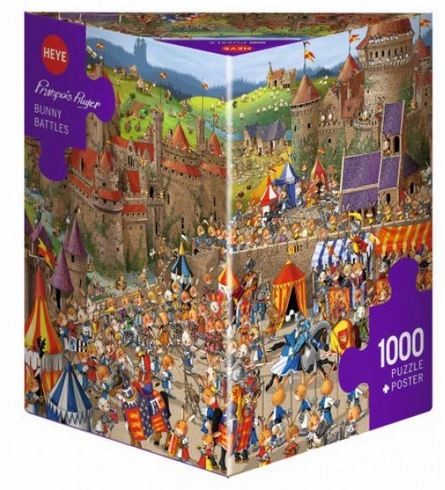 - Puzzle HEYE przedstawiające grafikę "Bitwa królików, Ruyer (1000el.)" składają się z 1000 elementów.
