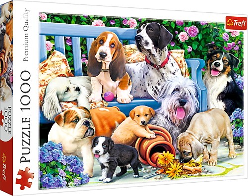 Puzzle 1000 elementów - Psy w ogrodzie