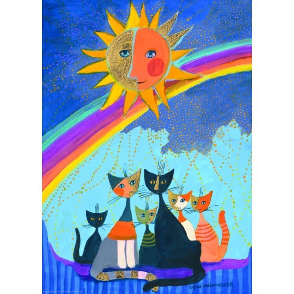 Strona główna Gry/Puzzle puzzle Puzzle 1000 elementów Szczęśliwa rodzinka kotów pod tęczą Cena Netto: 45,50 zł. error_outline Produkt chwilowo niedostępny. Opis Puzzle HEYE przedstawiające zdjęcie "Szczęśliwa rodzinka kotów z tęczą w tle" składają się z 1000 elementów. Po ich ułożeniu otrzymamy obraz o wymiarach 70 x 50 cm.