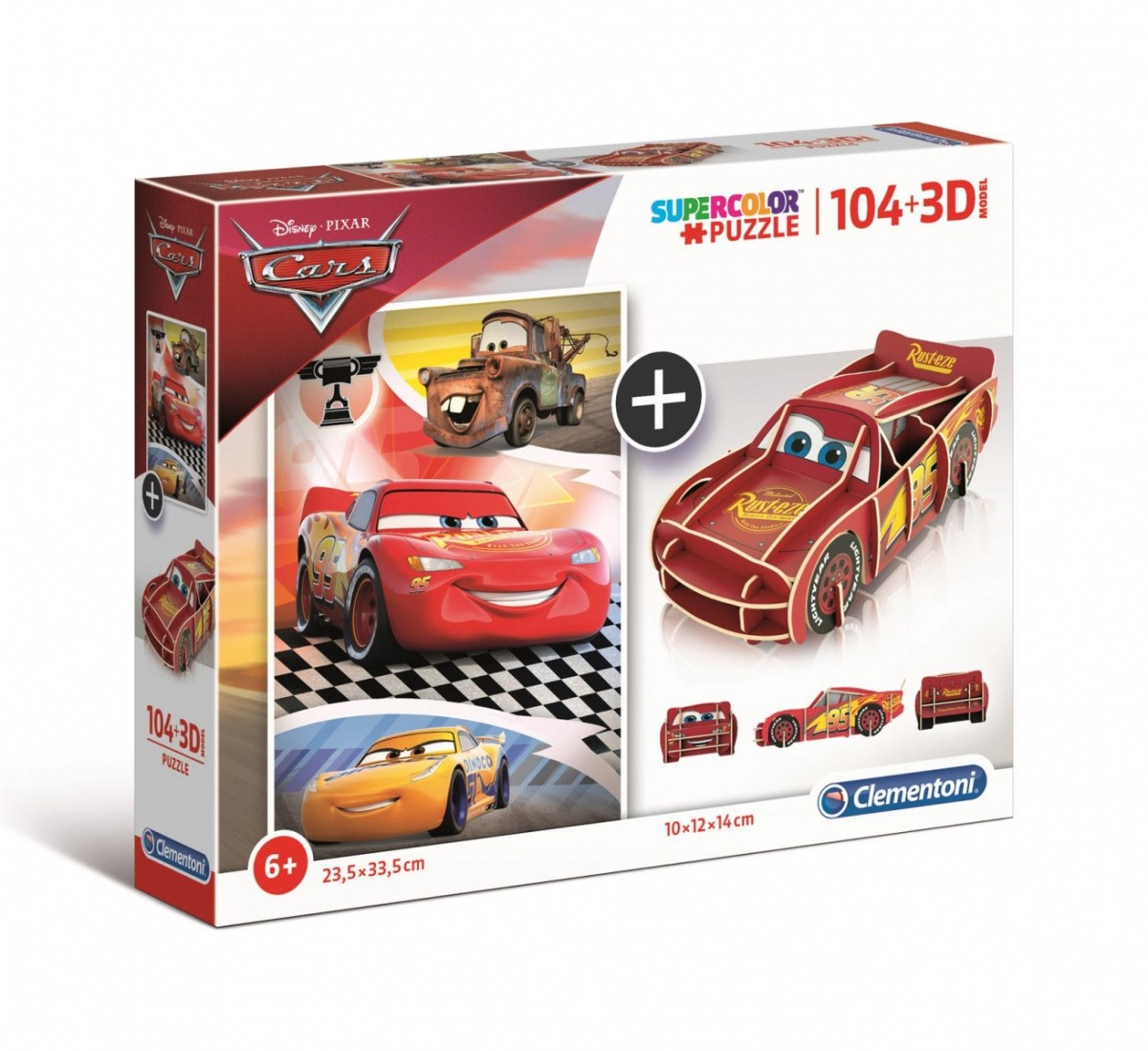 Puzzle Super Color 104 elementy wraz z kartonowym modelem 3D ulubionego bohatera Disney'a do samodzielnego złożenia. Wyjątkowe barwy druku uzyskano dzięki wykorzystaniu technologii Super Kolor.