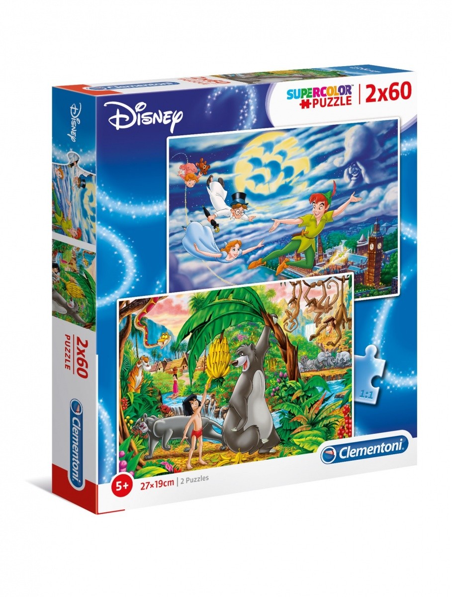 Puzzle 2 x 60 elementów Super Kolor Disney Classic - Księga Dżungli i Piotruś Pan