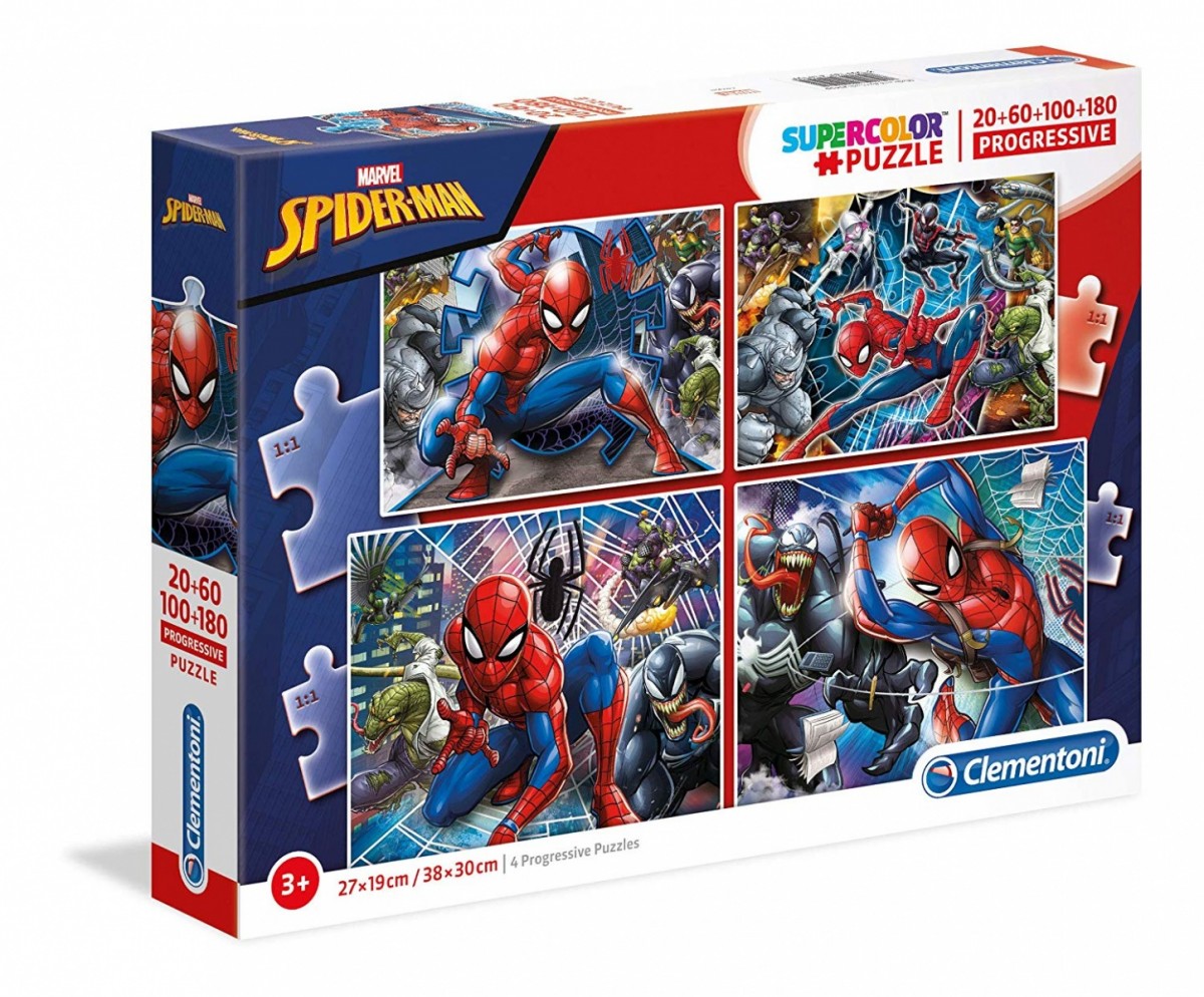 Puzzle 20+60+100+180 elementów Super Kolor - Spider-Man
