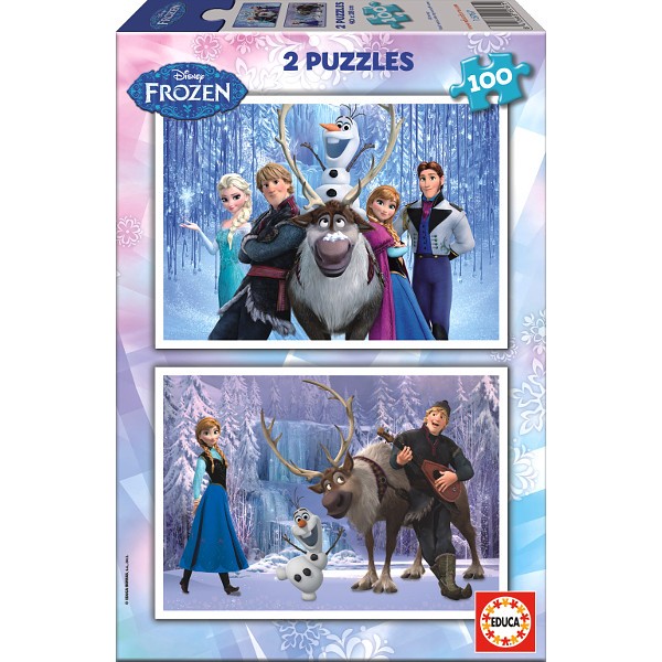 Wysokiej jakości puzzle Educa. Ładna kolorystyka, dwa motywy puzzli z bajki Disneya Kraina Lodu (Frozen), puzzle 100elementowe. Poszczególne elementy idealnie do siebie pasują, dzięki czemu dzieciom łatwo jest połączyć poszczególne elementy układanki. Po złożeniu cały obrazek można oprawić i powiesić na ścianie. Puzzle przeznaczone: dla dzieci w wieku od 6 lat.