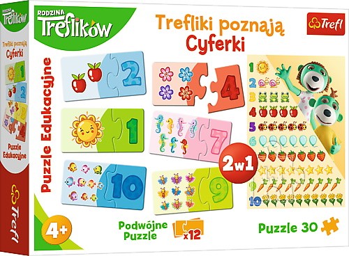 Puzzle 30 elementów - Edukacyjne, Trefliki poznają cyferki