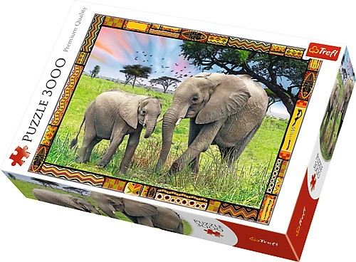 Puzzle 3000 elementów przedstawiające piękny widok na sawannę i afrykańskie słonie.