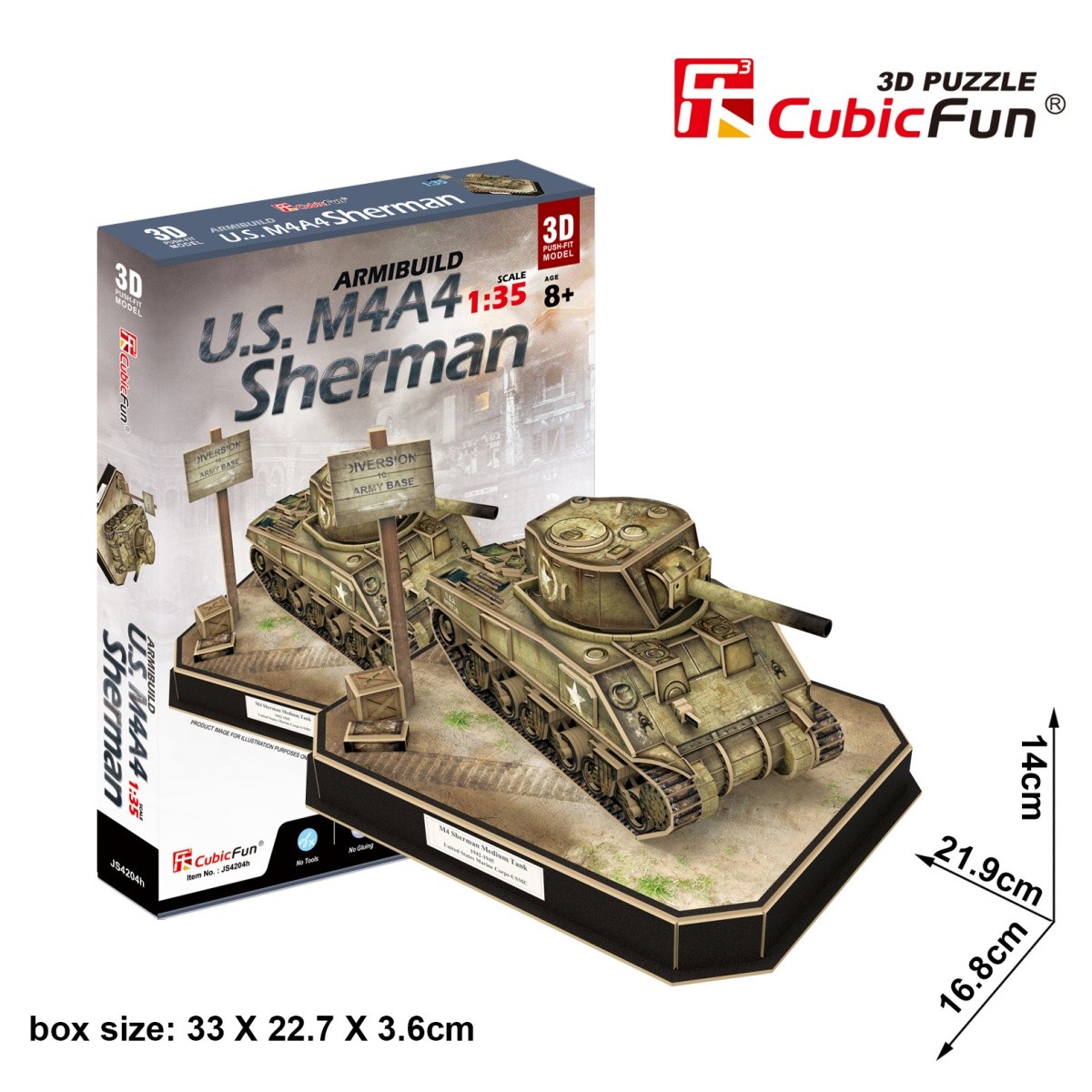 PUZZLE 3D CZOŁG SHERMAN M4A4, to pasjonująca zabawa dla dzieci i fanów militarii.