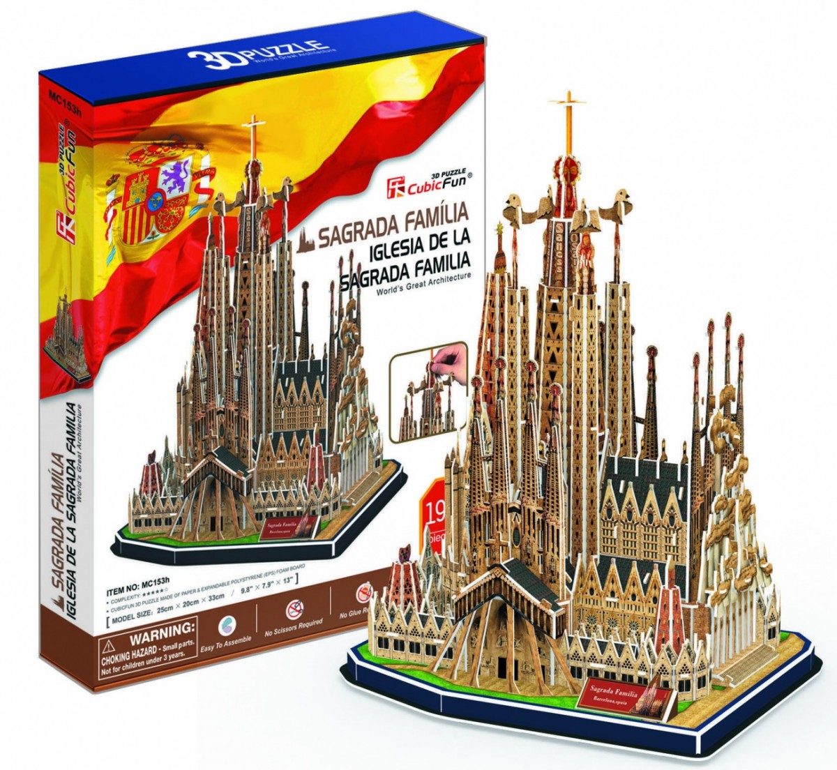 Opakowanie zawiera puzzle 3D, które umożliwiają złożenie modelu XL - Sagrada Familia.