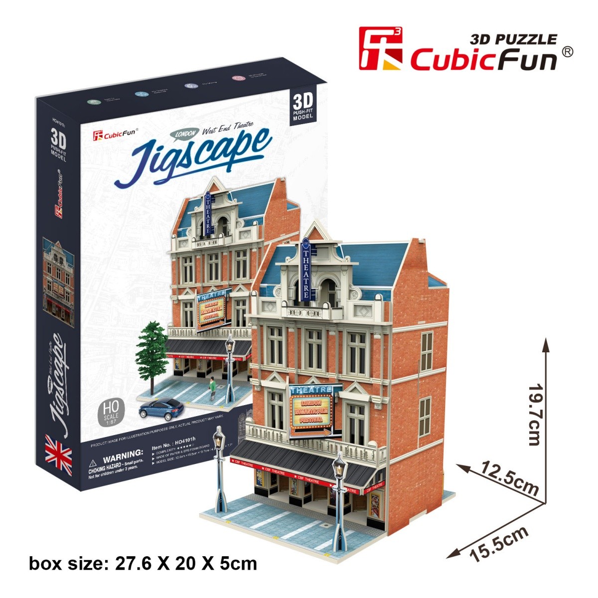 Opakowanie zawiera puzzle 3D, które umożliwiają złożenie modelu GREAT BRITAIN WEST END THEATRE.