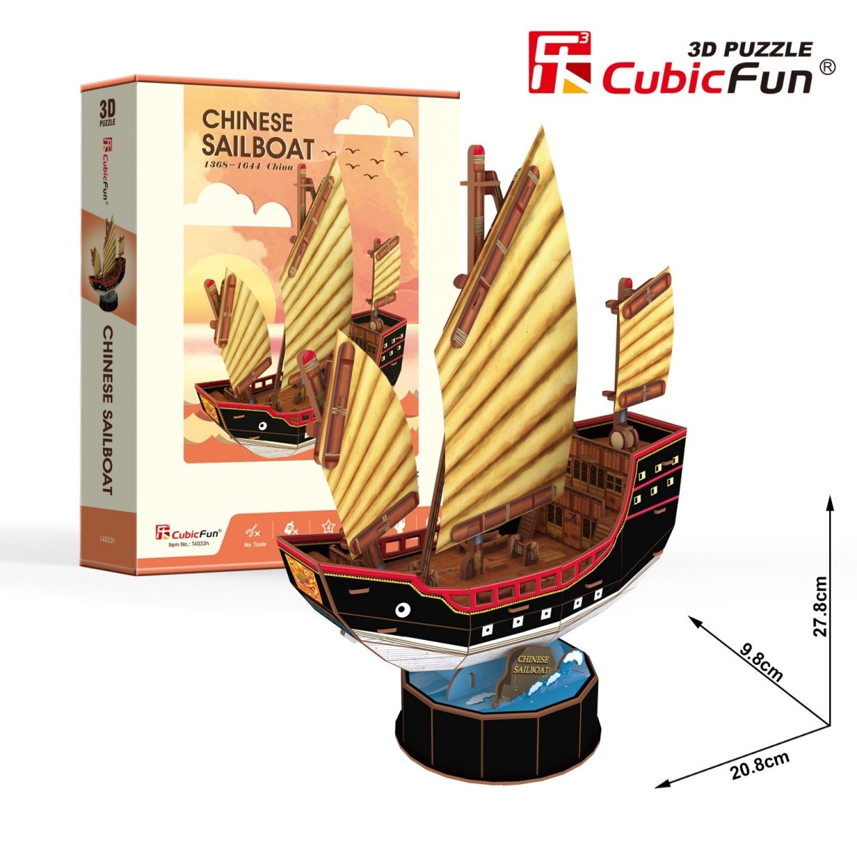 Opakowanie zawiera puzzle 3D, które umożliwiają złożenie modelu Żaglowiec Chinese Sailboat.
