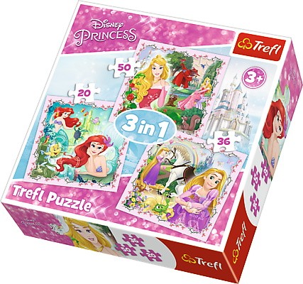 Puzzle 3w1 Księżniczki - Roszpunka, Aurora i Ariel