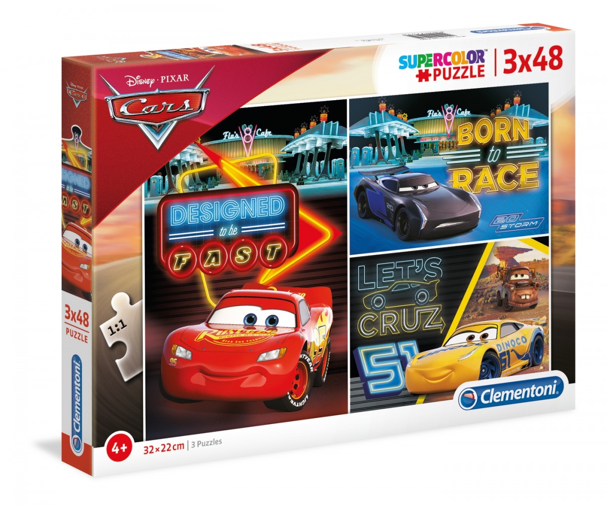 Puzzle 3x48 elementów Maxi Super Kolor - Auta