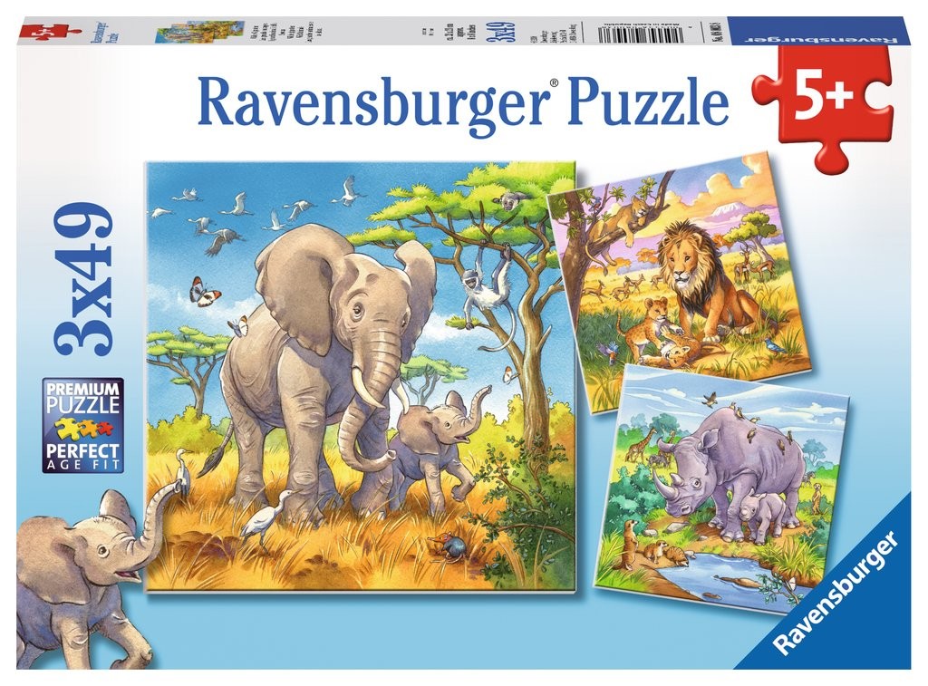 Puzzle 3x49 elementów - Dzikie zwierzęta