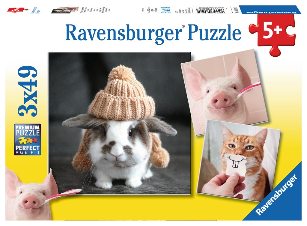 Puzzle 3x49 elementów - Śmieszne portrety zwierząt