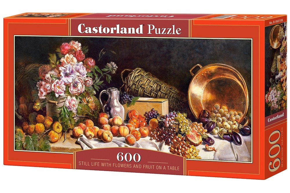Puzzle 600 elementów, Martwa natura - kwiaty i owoce