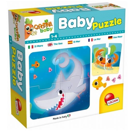 Puzzle ocean, składające się z trwałych kolorowych kafli, pozwalają na złożenie serii zwierzęcych obrazków. Gra rozwija zdolności manualne dzieci, szczególnie ważne w najmłodszych latach. Seria Carotina Baby to seria Lisciani, skierowana do dzieci w wieku 0-3 lat.