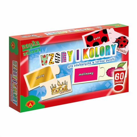 Gry te pomagają rozwijać myślenie logiczne, kojarzenie faktów, uczą podstaw matematyki, czy alfabetu. Każda gra składa się z 30 par puzzli, które należy połączyć w pary według wskazanego klucza. "Wzory i kolory" to gra, w której dzieci mają za zadanie odnaleźć jak najwięcej pasujących do siebie par puzzli. Po połączeniu właściwych puzzli gracz czyta nazwę obrazka. Wygrywa ten, kto ułoży najwięcej puzzli i prawidłowo wymówi znajdujące się na nich wyrazy. Do gry dołączona jest instrukcja podpowiadająca prawidłowe połączenie puzzli.