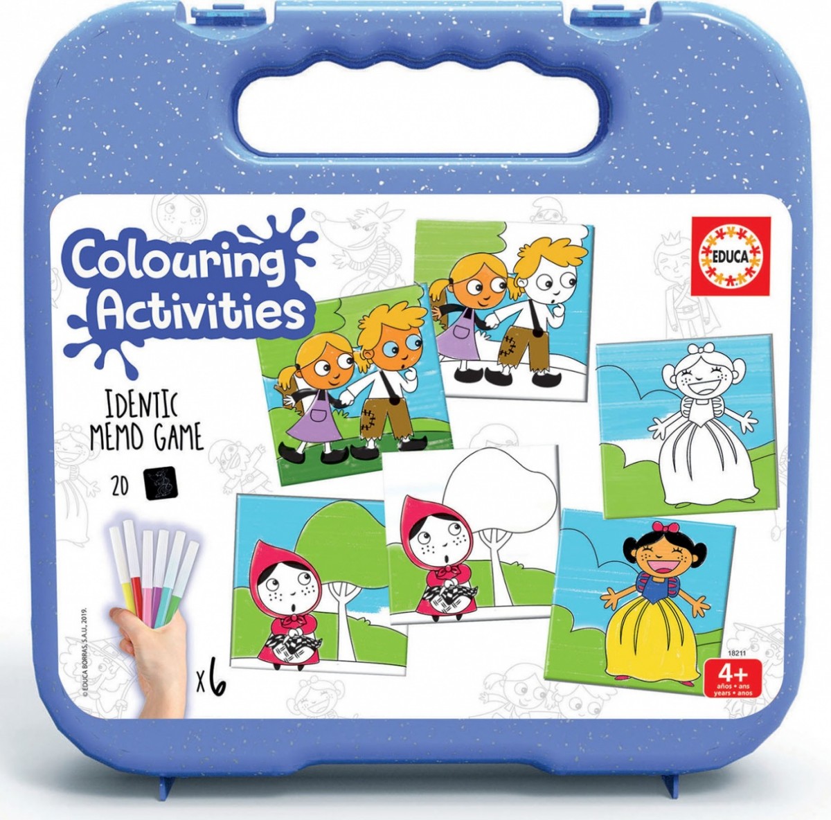 Pokoloruj i spersonalizuj swoją grę MEMO. Maluj i graj. Zestaw obejmuje grę pamięciową z 18 parami bezbarwnych kart i 6 kolorowymi mazakami. Graj w pary lub grupuj w opowieści.