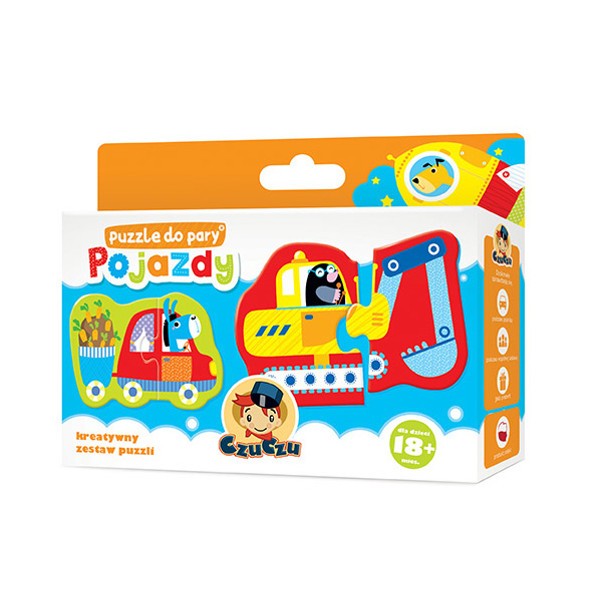 Zabawa w układanie puzzli rozwija zdolności manualne i spostrzegawczość. Jest świetnym sposobem na wspólną zabawę z maluchem. W zestawie znajdziemy 6 dwuelementowych układanek.