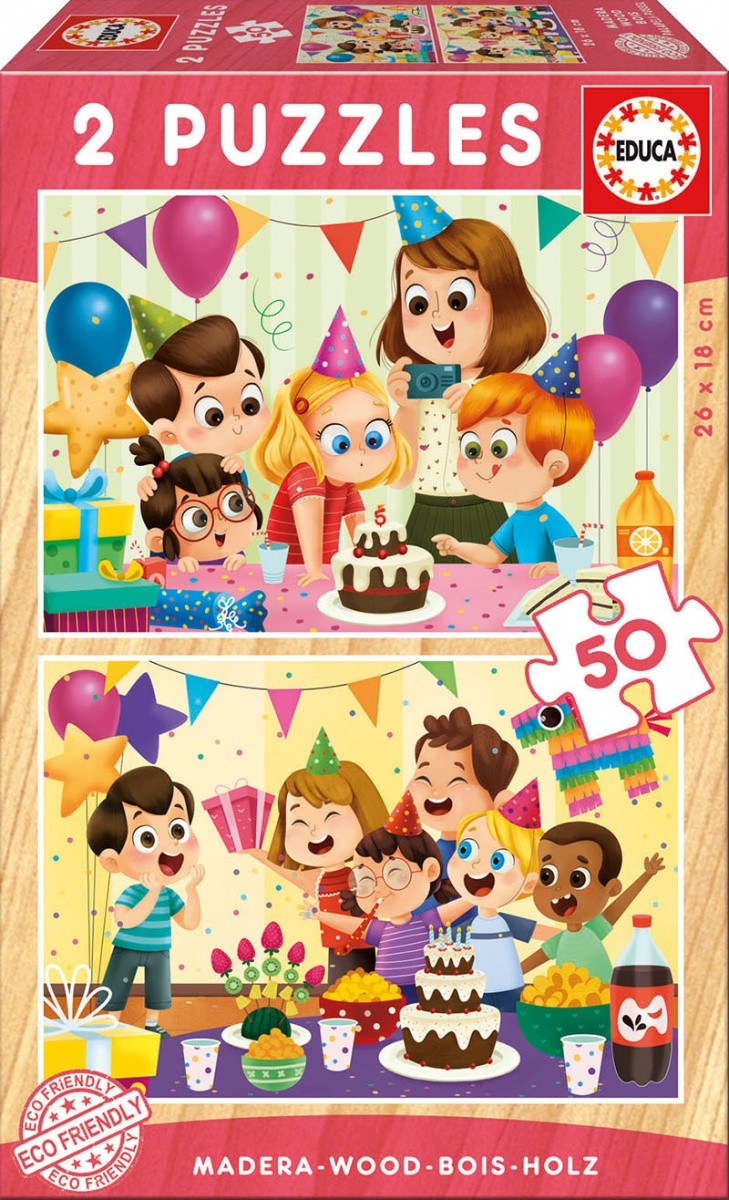 Puzzle drewniane 2x50 elementów Przyjęcie urodzinowe
