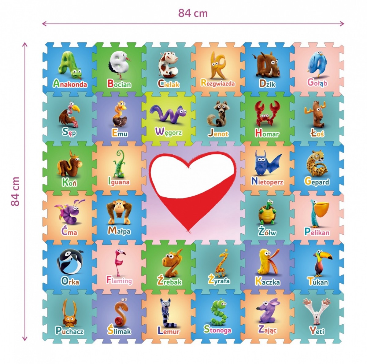 Bezpieczne i kreatywne puzzle z serii TVP ABC zawierają litery z polskiego alfabetu. Wyprodukowane na licencji Telewizji Polskiej i zawierają 33 litery, a każdej literce jest przyporządkowane odpowiednie zwierzątko, znane dzieciom z kanału TVP ABC. Puzzle nie tylko służą jako miękka mata dla Twojego malucha, ale stanowią ważny element edukacyjny. Uczymy dzieci polskiego alfabetu i pomagamy poznawać nazwy zwierzątek. Są to pierwsze puzzle piankowe, zawierające nasze Ą , Ć , Ę , Ł , Ń , Ó , Ś , Ź , Ż.