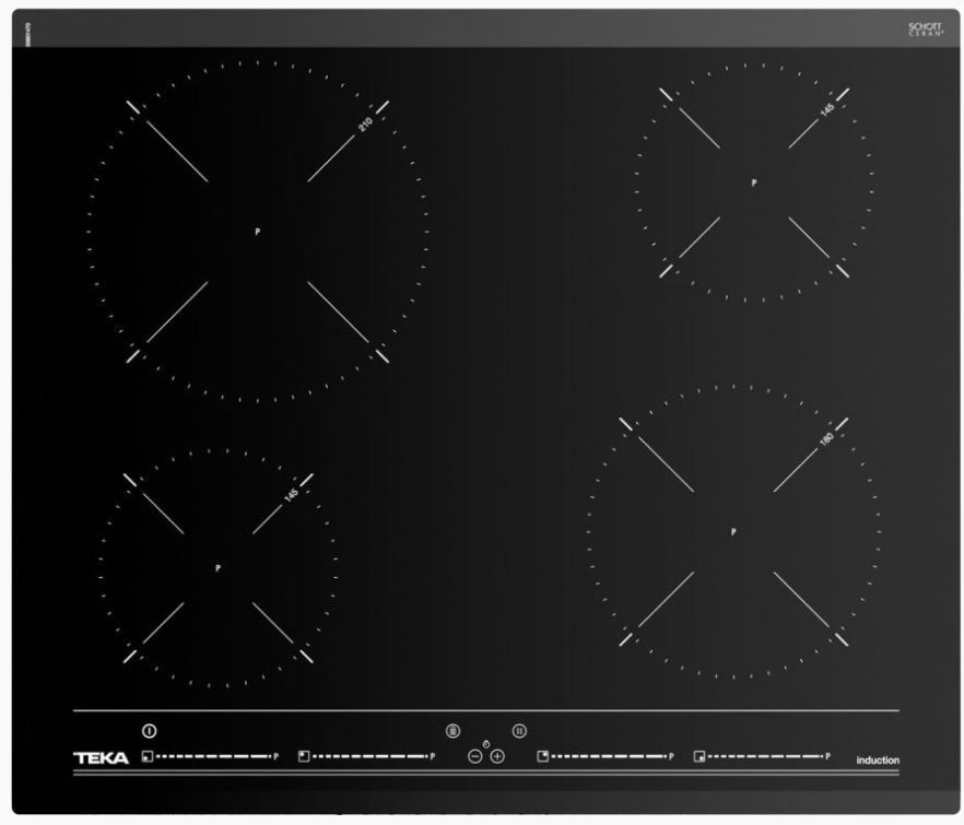 - Pola indukcyjne: 210 mm, 180 mm, 145 mm, 145 mm