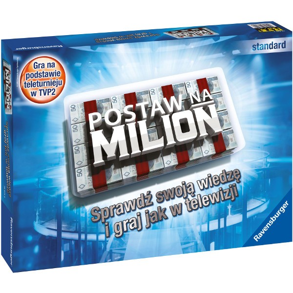 Zaczynasz grę z milionem złotych i próbujesz przejść 8 rund. W każdej rundzie czeka cię jedno pytanie.Znasz poprawną odpowiedź? Brawo! Jeśli postawisz na poprawną odpowiedź, zachowujesz pieniądze i grasz dalej. Jeśli nie jesteś pewien, która odpowiedź jest dobra, możesz się asekurować i podzielić pieniądze na kilka części, stawiając każdą z nich na odpowiedź, która twoim zdaniem może być poprawna. Ale uważaj: pieniądze postawione na odpowiedź błędną wpadają do czarnej dziury – i już po nich! POSTAW NA MILION to gra, która wciągnie każdego, niezależnie od wieku. Postaraj się przejść wszystkie rundy, zachowując jak najwięcej pieniędzy. Liczy się wiedza i wyczucie, tak samo jak w teleturnieju.